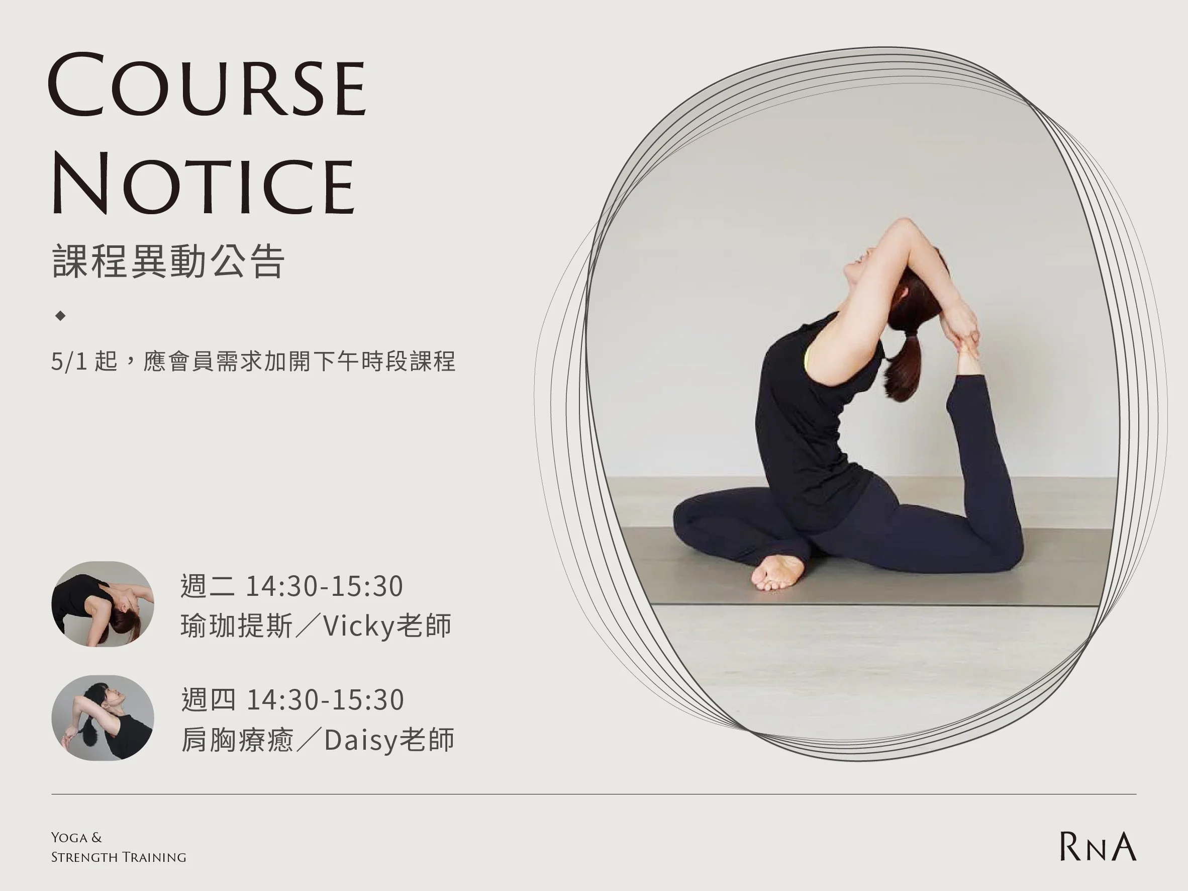 「我們在多年的訓練過程中觀察到,要讓身體能力穩定的進步,瑜珈加上重訓能有最好的效益,身體夠有力量穩定才有好的延展,而肌肉延展完整才能有好的發力,我們希望來到RNA的學生,都能找到這兩種訓練在自己身上最好的平衡, 我們也深信每個人體是獨一無二的,同樣的動作,每個人的解讀都不盡相同,所以運動訓練也該找到屬於自己身體的方式,基於這個理念去幫助學生理解自己,找到與自己身體溝通的方式。」——RNA Training ASHA&RAD