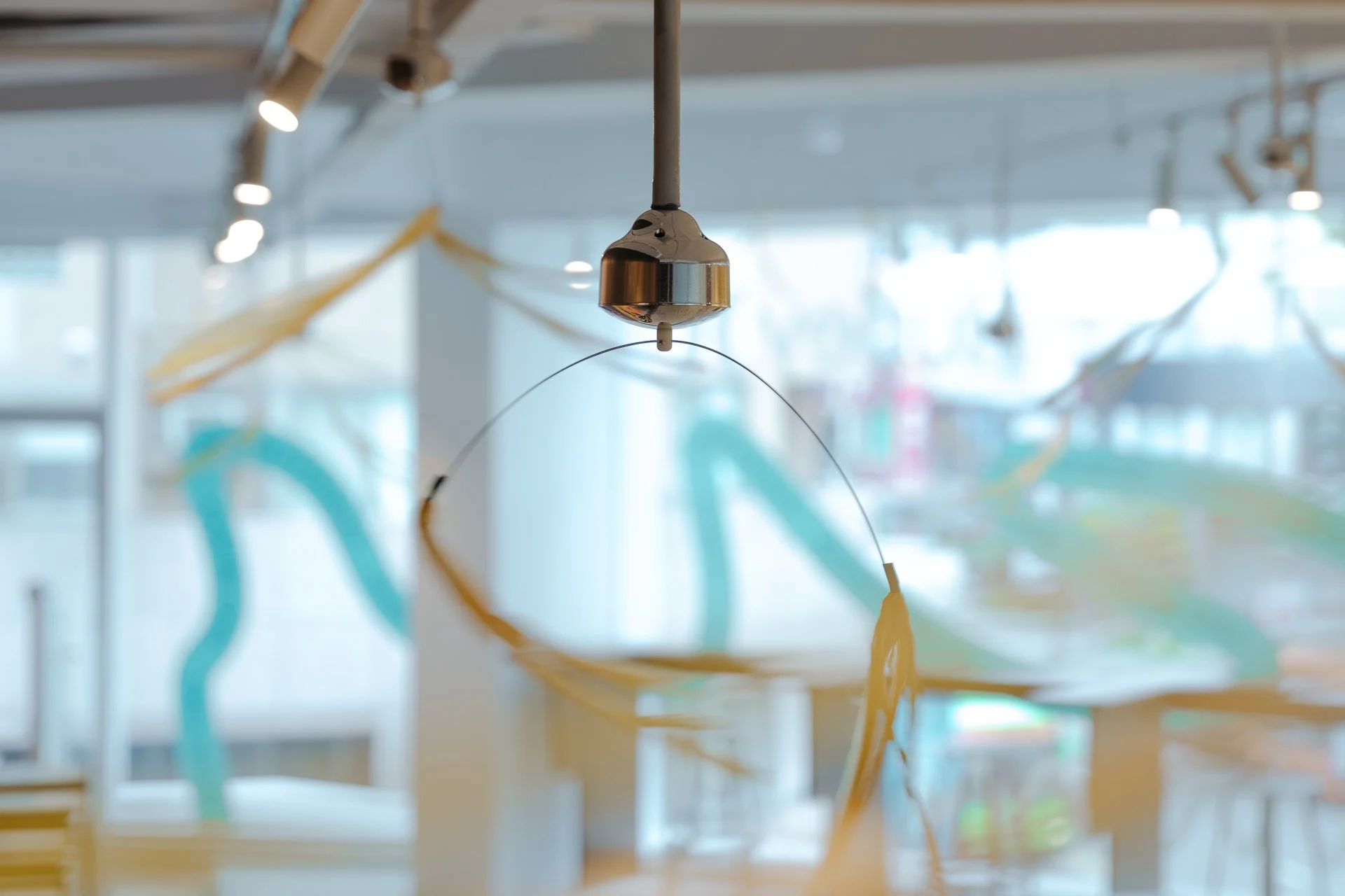 #螺旋轉動 三樓以OATSIDE為軸,挪移市場常見的攤位風扇作為天花吊扇