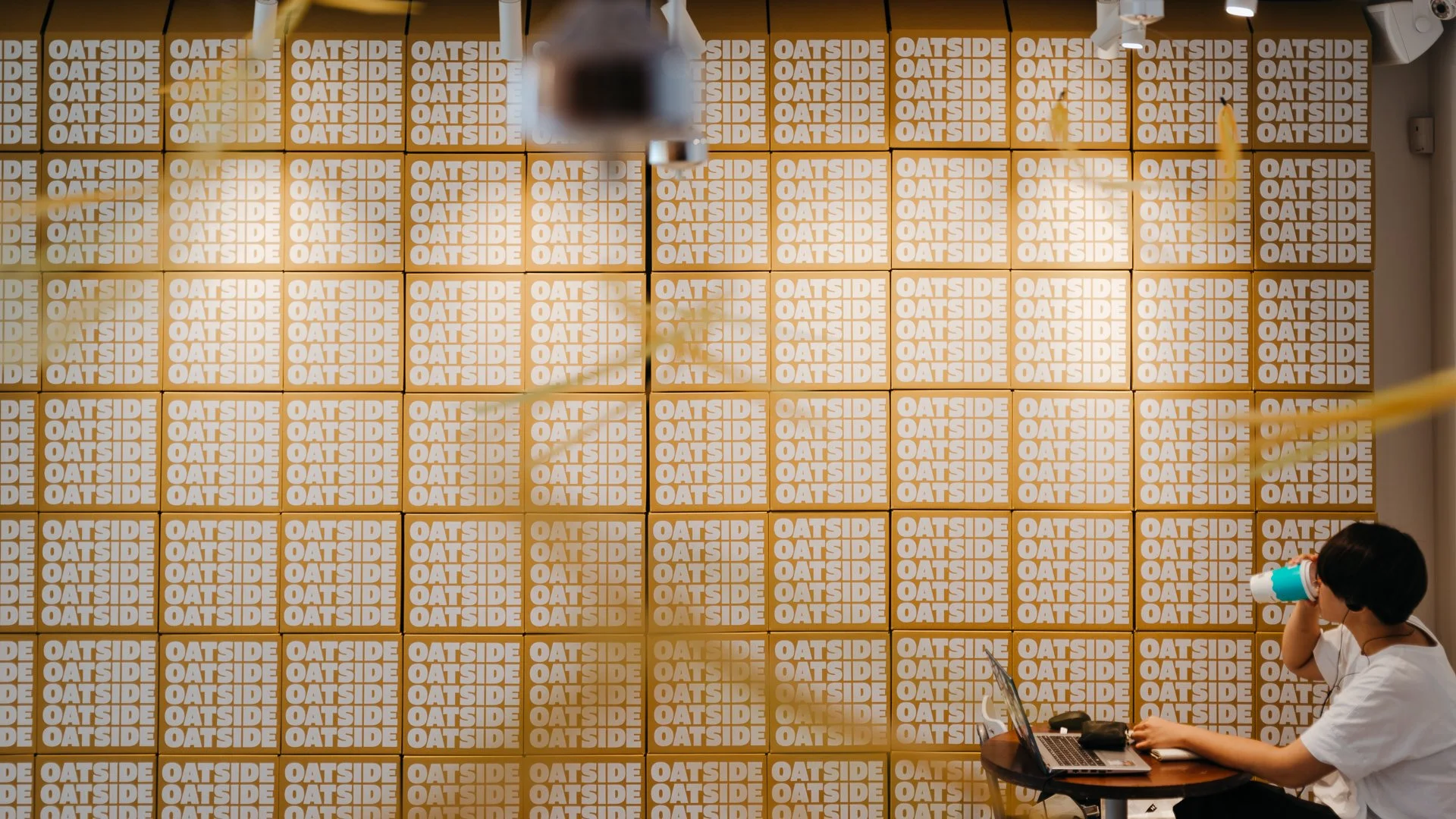 再倒入富有朝氣與輕鬆隨興的OATSIDE燕麥植物奶,