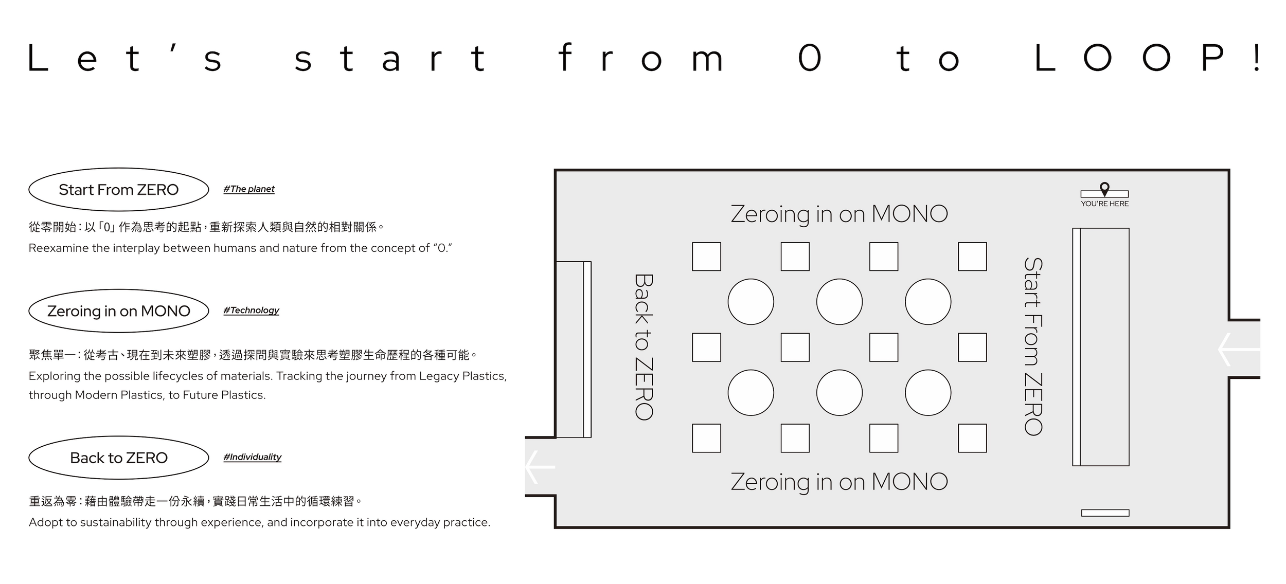 邀請觀者具體從零開始思考,擴大自我感知,帶走一份思考返回日常之中展開屬於自己的永續行動。